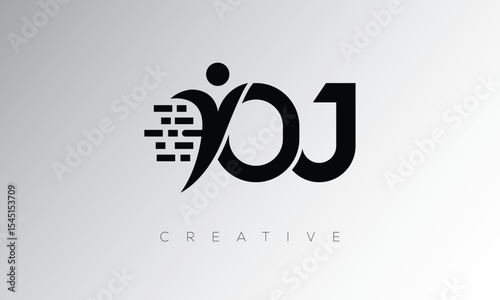 Fototapeta premium OJ Creative Digital Monogram Logo – Futuristic Letter mark Design Featuring Human Shape, Pixel Motion & Minimal Tech Style for Innovative Branding Identity