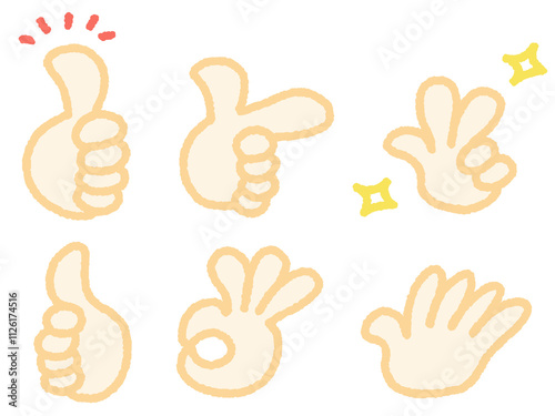 Obraz premium 手描きの色々なハンドサインのセット いいね 指差し OK