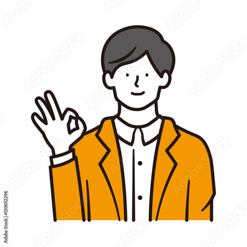 © ノモケン, Obraz premium 笑顔でOKサインを出すビジネスマンの上半身のイラスト素材