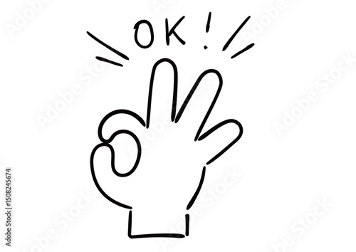 Obraz premium 手書き風の手のイラスト OKサイン 白塗り