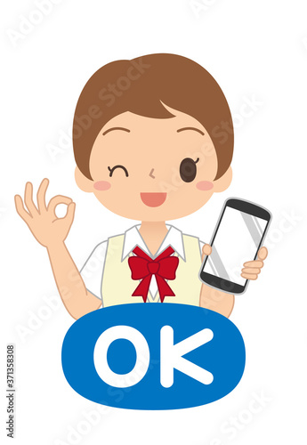 Obraz premium OKサインでスマホを持つ女の子のアイコン 高校生 中学生 イラスト