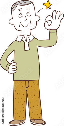 © haru_natsu_kobo, Obraz premium OKのサインを示す中高年の男性の全身