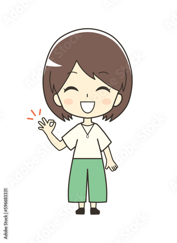 Obraz premium OKする女性のイラスト