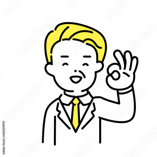 © studio uguisu, Obraz premium かわいい人物のイラストシリーズ _ オフィスワーカー_シニア _ okサイン