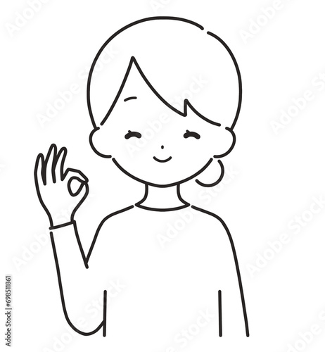 Obraz premium モノクロ|OKマークの私服の女性|上半身