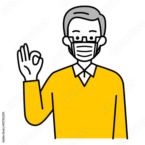 © pawz, Obraz premium マスクを付けてOKサインをする年配の男性