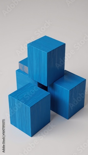 © Pixel Matrix, Obraz premium Ok 3D render of blue wooden cubes with abstract background block texture