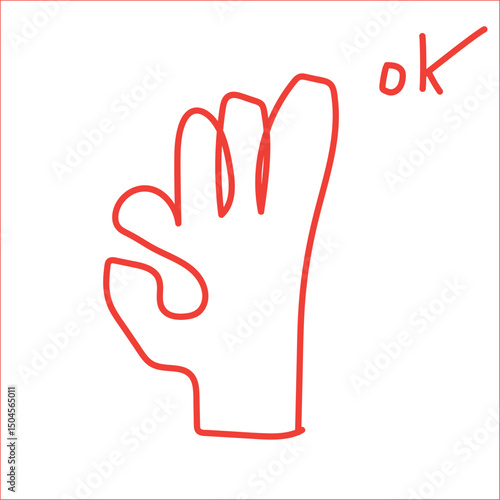 Obraz premium Ok hand gesture simple red line drawing.