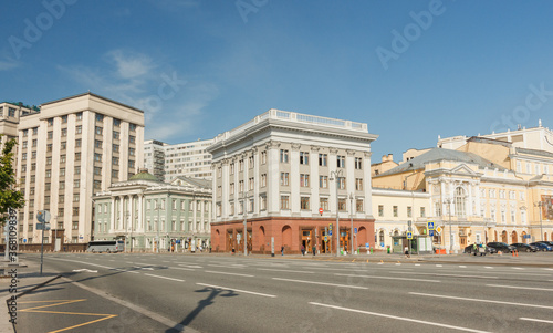 Obraz premium Okhotny ryad street and Russian Parliament building in central Moscow, Russia