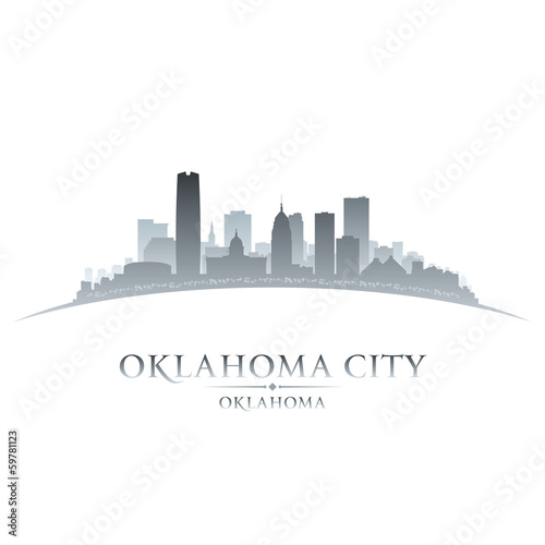 © yurkaimmortal, Naklejka premium Oklahoma city silhouette white background