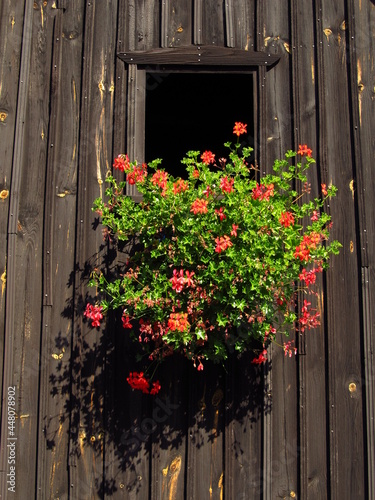 Naklejka premium Okna bez szkieł na drewnianej ścianie, Polska