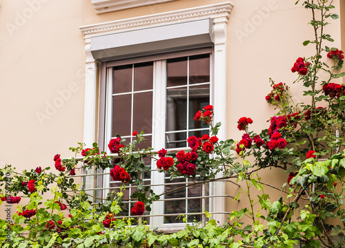 © satura_, Naklejka premium okno z różami