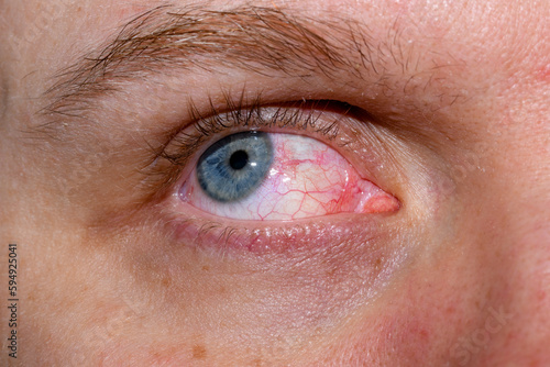 Fototapeta premium Oko patrzące w górę w zbliżeniu z alergią