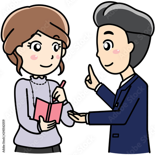 Fototapeta premium 男性女性会社員OL-笑顔で会話、相談