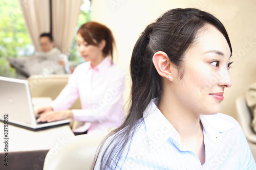 Fototapeta premium カフェ店内にいるOLとビジネスマン
