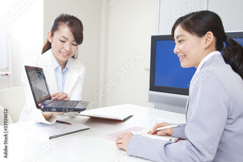 Fototapeta premium パソコンを使ってプレゼンするOL