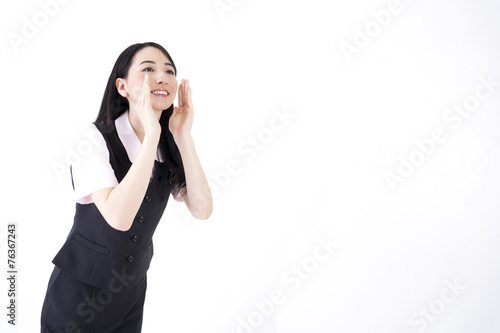 Fototapeta premium 白バック 金融系OL 応援するポーズと笑顔