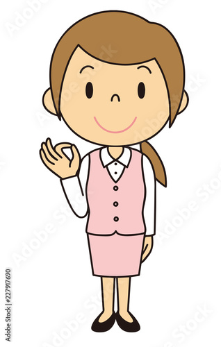 Fototapeta premium 女性 OL 事務員 OKポーズ 立ち姿 ピンクの制服