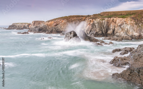 © AGUS, Fototapeta premium Olas espectaculares chocando en acantilado asturiano