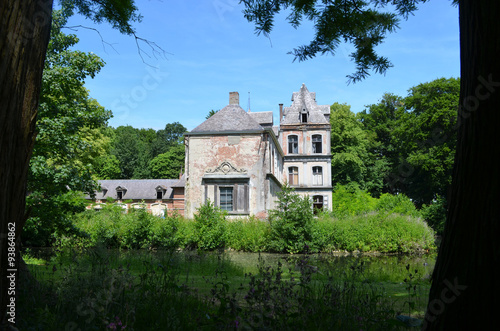 © lembrechtsjonas, Obraz premium Old abandoned mansion on an island in a forest