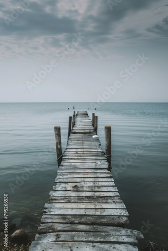 © grey, Fototapeta premium Old abandoned pier at the sea, minimalist photography