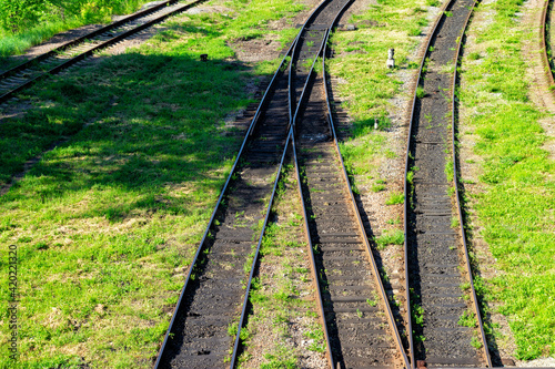 Fototapeta premium Old abandoned railway, intertwining railroad tracks