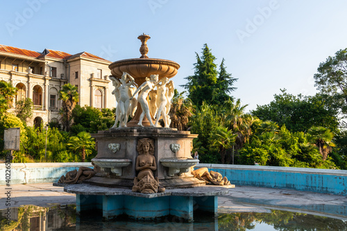 Fototapeta premium Old abandoned sanatorium and hospital. Soviet architecture