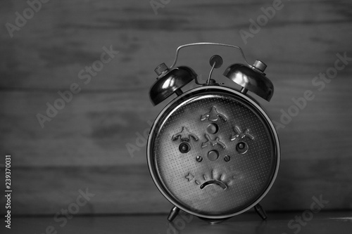 Fototapeta premium old alarm clock time sad white black morning bell retro hour