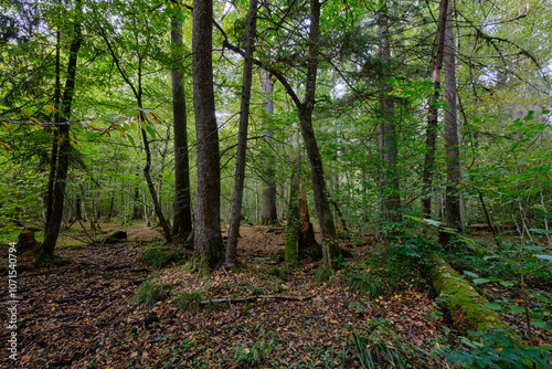 © Aleksander Bolbot, Fototapeta premium Old alder trees in background in autumnal deciduous tree stand