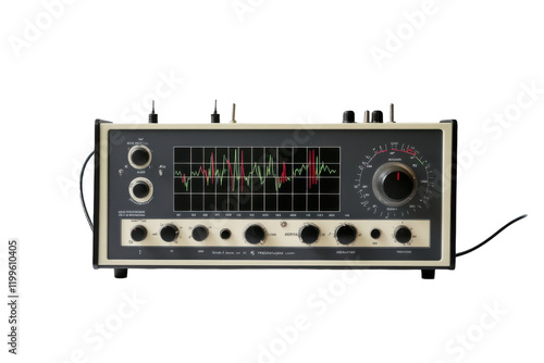 © SAM''s GALLREY, Obraz premium Old analog oscilloscope displaying waveforms in a laboratory setting during daylight hours
