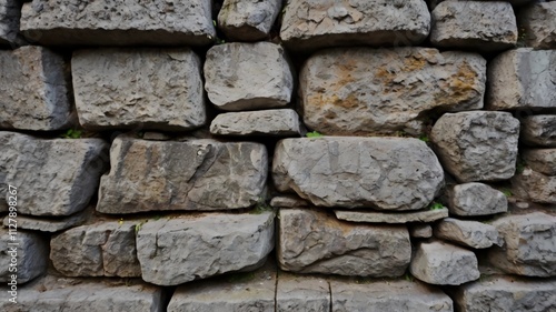 © julfiar, Fototapeta premium Old ancient gray stone wall close up. Background texture for backdrops or mapping