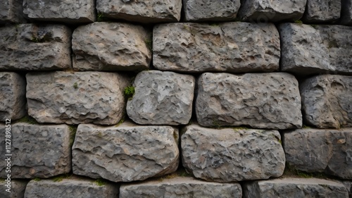 © julfiar, Fototapeta premium Old ancient gray stone wall close up. Background texture for backdrops or mapping