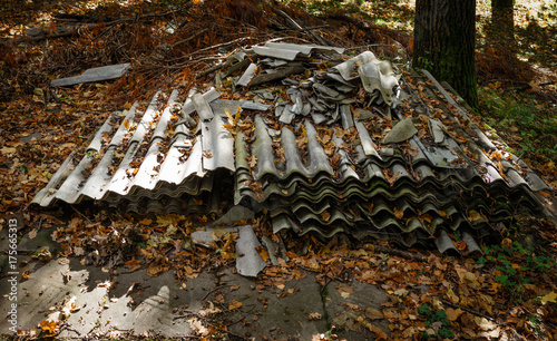 Obraz premium Old and dangerous asbestos roof. Asbestos fibers in the environment.