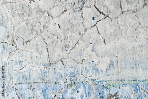© colnihko, Obraz premium Old and dirty crumbling wall with peeling paint and cracks texture. Grunge interior background closeup