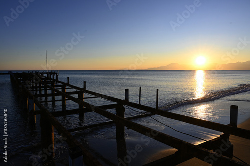 © cn.ycl, Obraz premium old and disused iron pier extending towards the sea