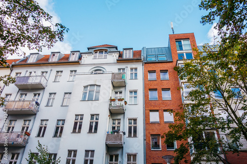 © Novanture, Fototapeta premium old and modern apartment house at berlin with white and red facade