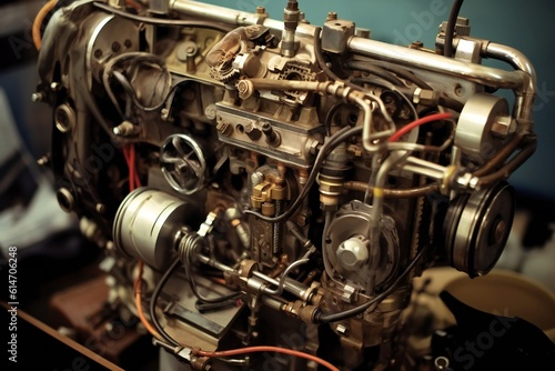 © LayerAce.com, Fototapeta premium Old antique car engine closeup Generative AI