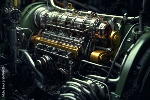 © LayerAce.com, Fototapeta premium Old antique car engine closeup Generative AI