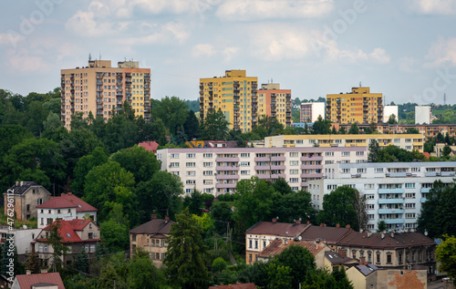 © Milos, Fototapeta premium Old apartment buildings in the Town of Cieszyn as seen from Piast Tower, silesian voivodeship, Poland