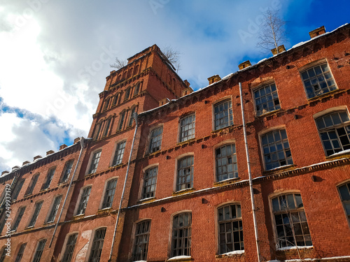 Fototapeta premium Old architectural plant. Old abandoned red brick factory.Ancient construction.