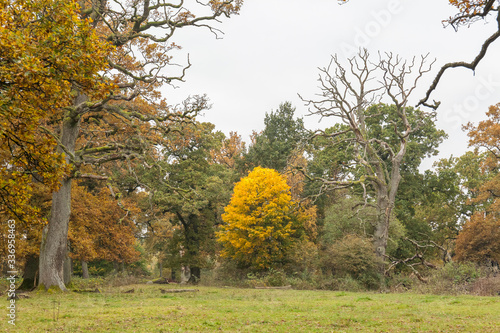 Fototapeta premium Old Autumn Forest, Autumn, Fall scene. Beautiful Autumnal park. Beauty nature scene. Autumn landscape, Trees and Leaves