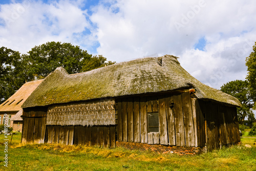 Obraz premium Old barn with thatched roof in the dutch countryside.