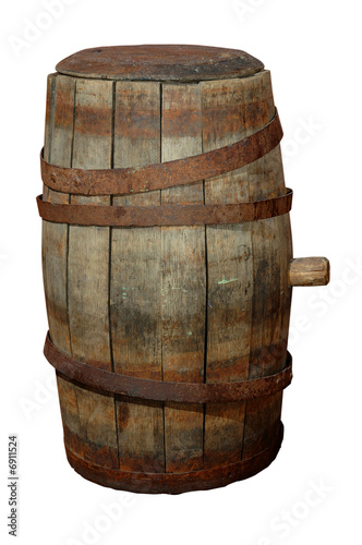 © Flavijus Piliponis, Obraz premium Old Barrel on the white background