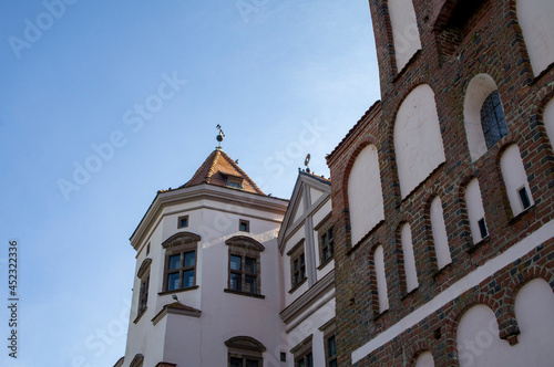 © Payllik, Fototapeta premium Old beautiful medieval castle fortress with towers. Ancient european architecture