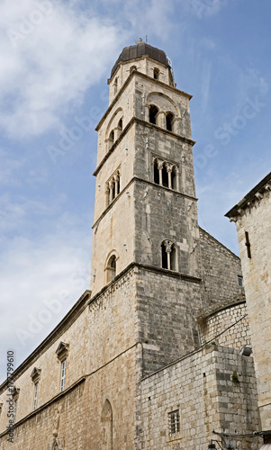 © Mikhail Blajenov, Naklejka premium Old bell tower in Dubrovnik, Croatia. St.Franciskus monastery