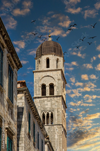 © dbvirago, Fototapeta premium Old Bell tower in the walled city of Dubrovnik, Croatia