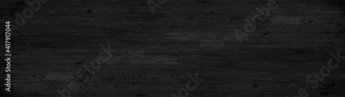 © Corri Seizinger, Naklejka premium old black grey rustic dark wooden texture - wood background panorama long banner