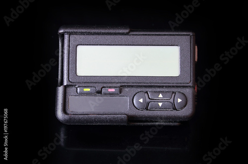 © AFS-ART, Fototapeta premium Old black pager isolated on black background