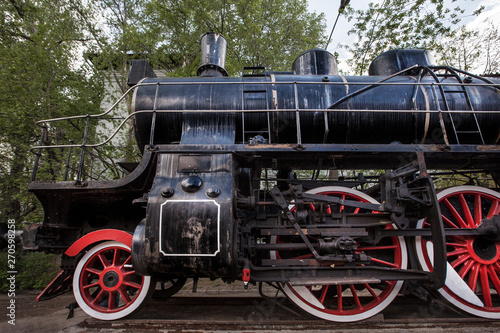 © Irina, Naklejka premium Old black train with big red wheels . Retro train.