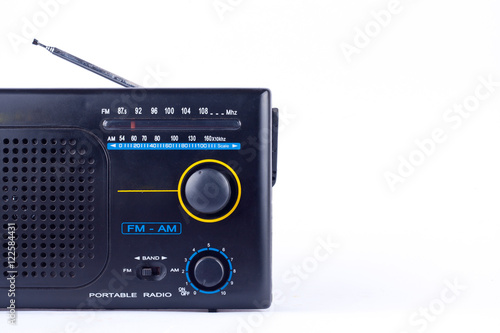 © ninefar, Fototapeta premium old black vintage retro style AM, FM portable radio transistor receiver on white background isolated close up